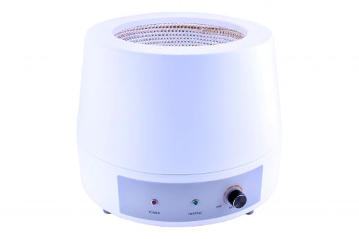 - Нагрев идет от термоэлемента (нихром в стеклоткани) имеющего форму полусферы и достаточно плотно прилегающего к колбе. Форма нагревающего элемента обеспечивает большую нагревающую площадь, быстрый нагрев, отсутствие пламени, высокую плавность нагрева, бесступенчатость , энергосбережение и высокую эффективность.