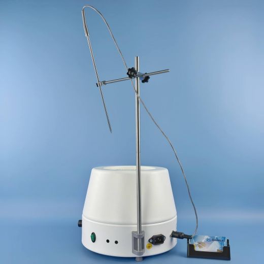 Колбонагреватель с магнитной мешалкой 5drops-1000DS на 1000 мл, с цифровым дисплеем и внешним датчиком температуры это уникальное лабораторное устройство, которое может одновременно нагревать и перемешивать жидкость, обеспечивая полную равномерность температуры и однородность смеси. В отличие от классических плиток и магнитных мешалок, где нагрев идет только снизу, колбонагреватель серии DS использует сферическую нагревательную камеру, которая передает тепло на всю поверхность колбы.