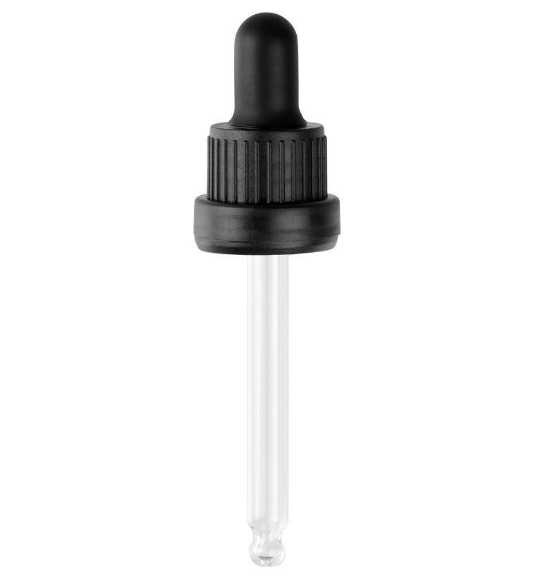 Крышка черная винтовая с пипеткой,100шт, Din18, с КПВ, для капельных флаконов 30 мл