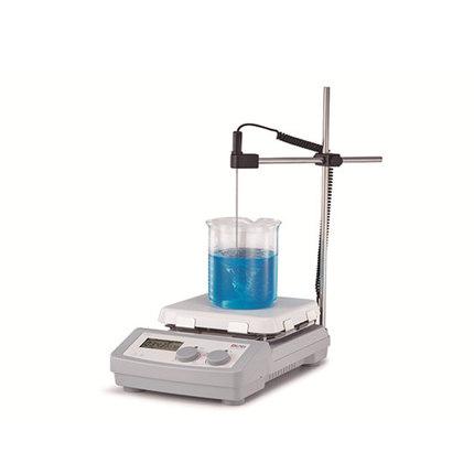 Магнитные мешалки с подогревом. представляет собой электронно-механическое устройство, которое обеспечивает выполнение операций по смешиванию реагентов при заданной постоянной скорости вращения магнитного якоря, помещенного в сосуд с жидкостью, а также возможность проводить равномерный нагрев любой лабораторной термостойкой посуды, помещённой на платформу. Помимо лабораторного использования магнитные мешалки, расчитанные на перемешивание больших объёмов жидкостей ( от 5 до 20 литров), могут быть использованы в быту при производстве домашних алкогольных напитков или браги, требующих регулярного перемешивания без нарушения герметичности их хранения, а также при перемешивании жидкости внутри узкогорлых бутылей.