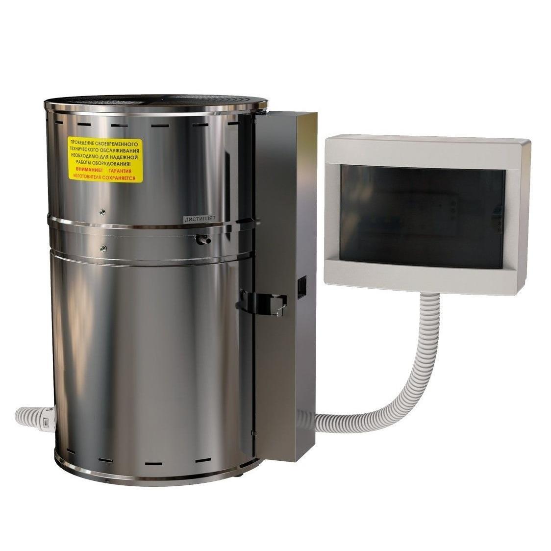 При снижении уровня воды в камере испарения нагрев автоматически отключается, предотвращая поломку ТЭНа и перегрев устройства. Опционально возможно объединение с накопительным баком: дистиллятор прекращает работу при наполнении резервуара.