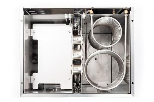 Доступ к камере кипения и камере конденсации упрощает удаление накипи и осадка. Съёмные крышки позволяют проводить профилактические работы без полной разборки корпуса.