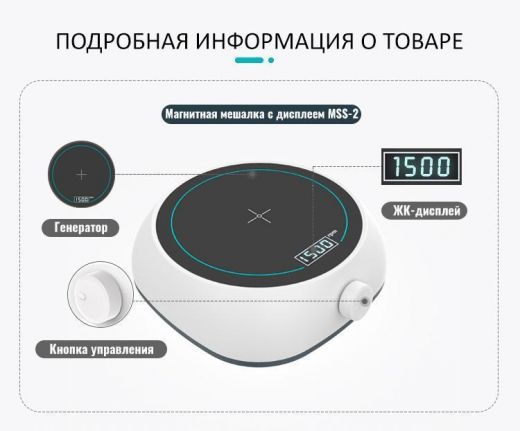 Мини магнитная мешалка c цифровым дисплеем, без нагрева 5Drops-MSS-2 на 2 литра