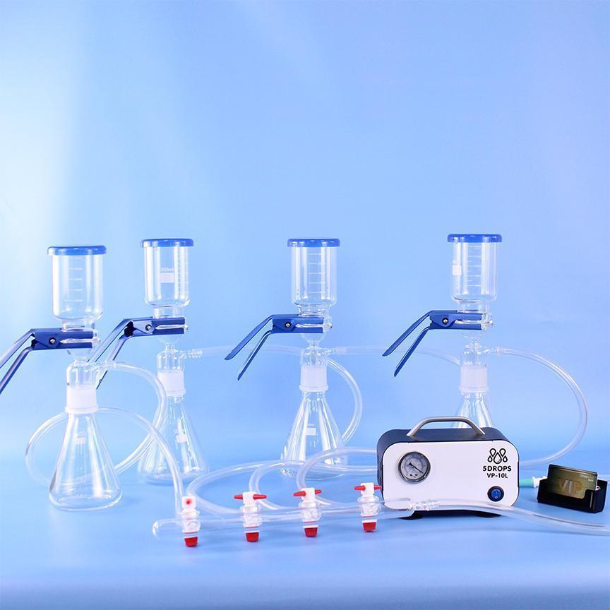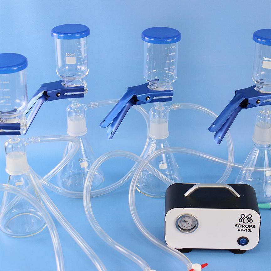 — Безмасляный диафрагменный (мембранный) насос 5drops-VP-10, 10 л/мин - обеспечивает стабильный и регулируемый источник вакуума (0,075 Мпа) для оптимальных условий фильтрации.