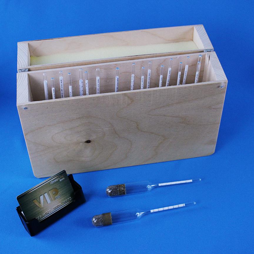 Набор ареометров общего назначения АОН-1 (700...1840) кг/м³, 19 шт, (ГОСТ 18481-81) универсальные лабораторные ареометры, рассчитанные на быстрый контроль плотности практически любых жидкостей: от лёгких органических растворителей до насыщенных солевых растворов и технических масел. Данный вид ареометров закрывает 95 % типовых задач производства, НИОКР и учебных лабораторий, позволяя оперативно вносить коррективы в технологические процессы и подтверждать качество готовой продукции.