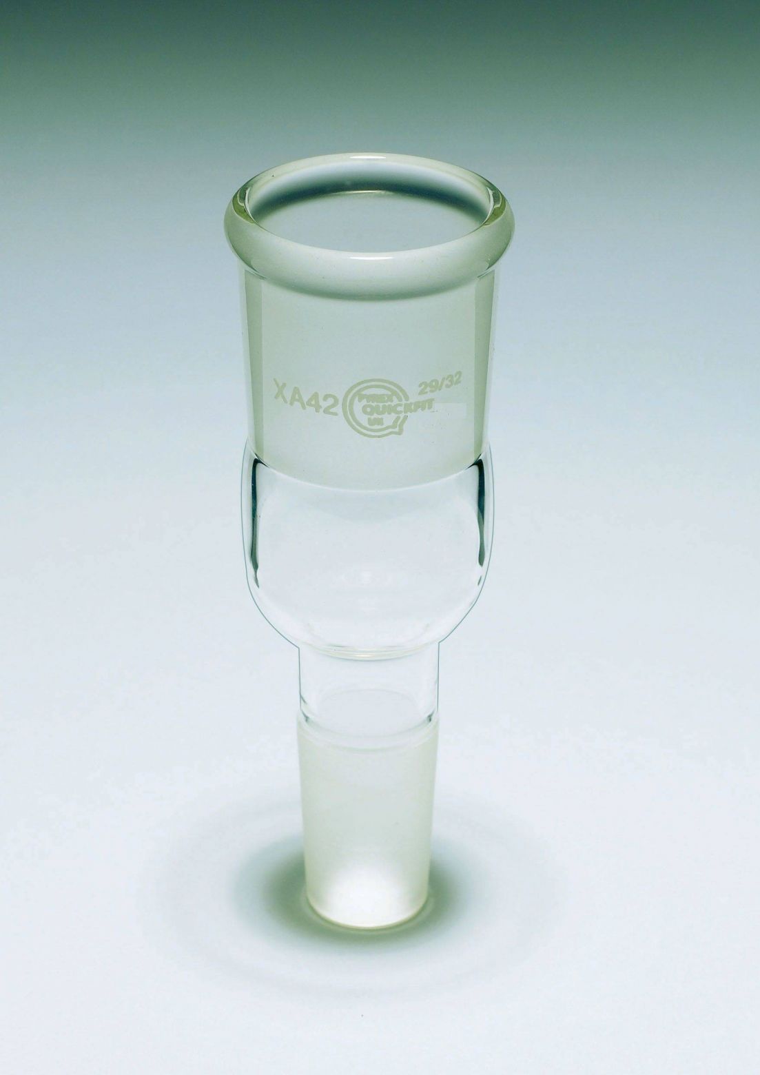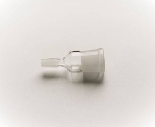 Стеклянный переходник для подсоединения любого ХОЛОДИЛЬНИКА или ДЕФЛЕГМАТОРА под входной шлиф 29/32 мм к колбе Бунзена со шлифом горла 14/23 мм или напрямую к силиконовому шлангу с внутренним диаметром от 10 мм. Переход расчитан на шлифы керн - 14/23 муфта - 29/32 мм.