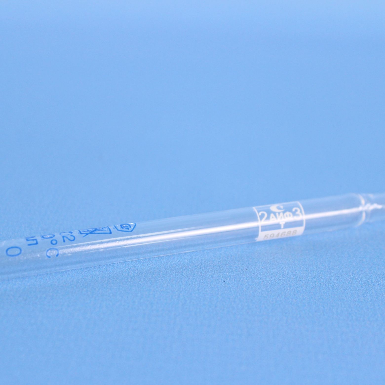 Пипетка градуированная 1-2-2-10, 10 мл, неполный слив, с расширением, 2-го кл.точности, 5 шт/упак, (ГОСТ 29227-91). широко применяется в лабораторных условиях, в медицинских и учебных учреждениях. Пипетки различаются по типу слива жидкости, по назначению и объему. Градуированные пипетки широко используются в лабораторной практике для отмеривания необходимого объема жидкости с высокой точностью. Они незаменимы в химических, биологических, клинических исследованиях, а также в фармацевтической и медицинской отраслях, где необходимо обеспечить строгое соблюдение пропорций и дозировок. Градуированная пипетка 1-2-2 производится в соответствии с высокими стандартами качества, утвержденными ГОСТ 29228-91. Изготавливается из термически и химически стойкого боросиликатного стекла марки ТС по ГОСТ 21400-75, которое обладает устойчивостью к воздействию окружающей среды, к высоким температурам (до 250°C) и является нейтральным к различным составам. Каждый экземпляр снабжен индивидуальным номером и внесен в государственный реестр измерительных инструментов "Аршин", что подтверждает его точность и надежность.