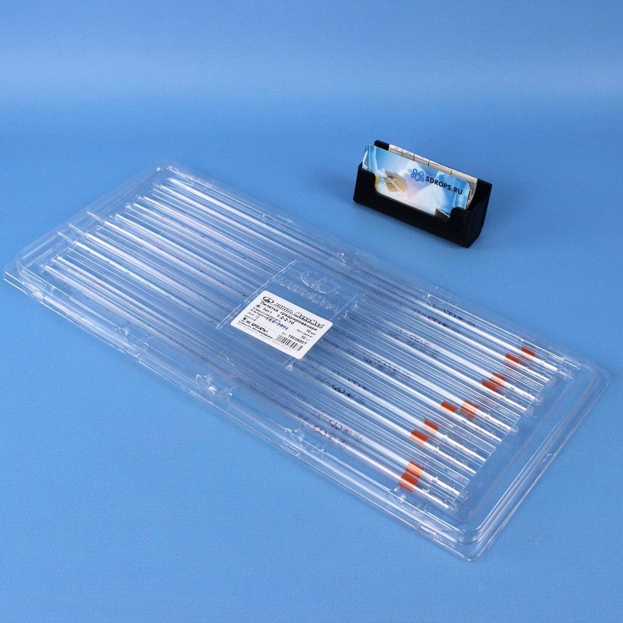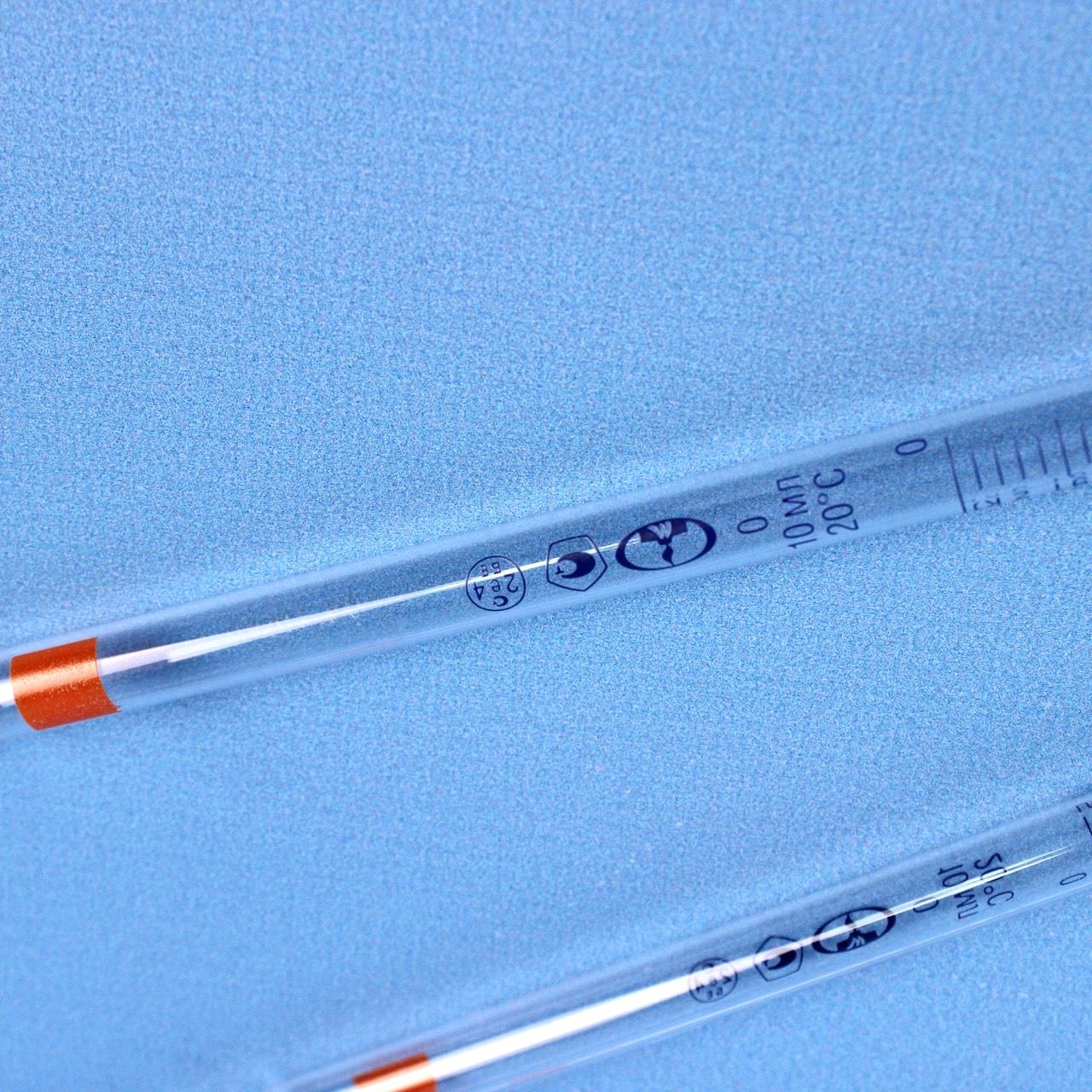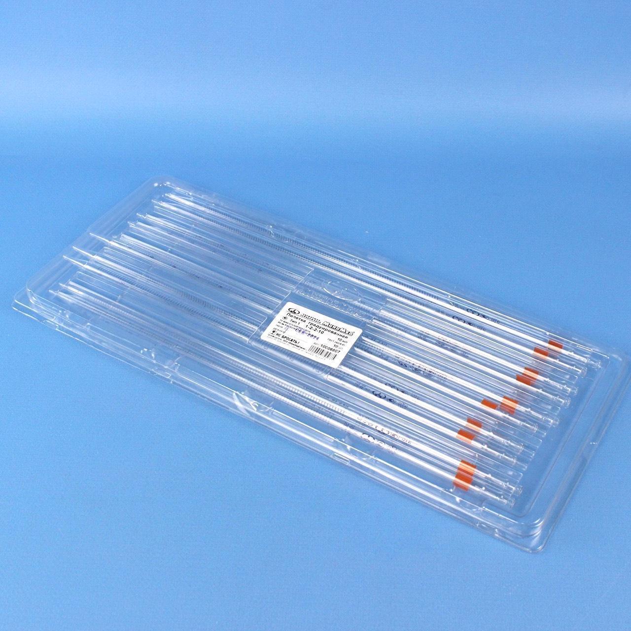 Пипетка градуированная 1-2-2-10, объем 10 мл, неполный слив, с расширением, 2 класс, 10 шт/упак