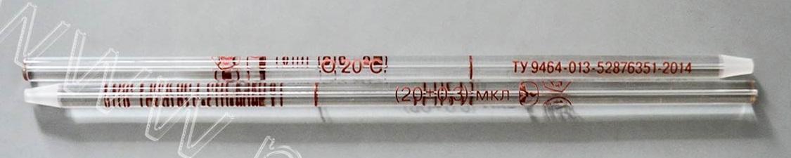 Пипетка прямая стеклянная типа Сали (Упаковка 100 шт.) - предназначена для дозирования 20 мкл жидкости. Маркировка на пипетке нанесена краской, устойчивой к механическим и химическим воздействиям.