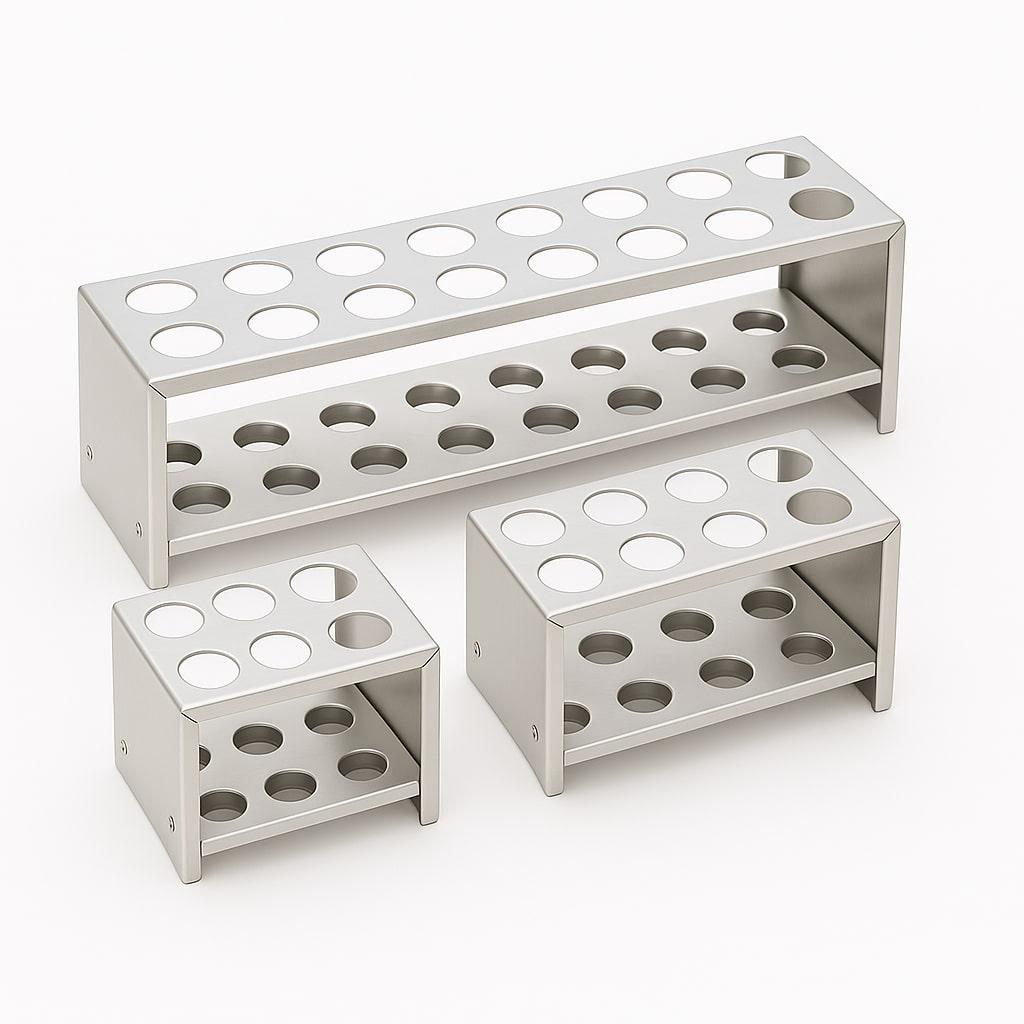 Штатив Ш-40/15 для пробирок диам., 15 мм, 40 гнезд, алюминий. Обеспечивает безопасное вертикальное размещение, транспортировку и сортировку пробирок различного объёма. Штатив предотвращает опрокидывание, облегчает организацию рабочего места и поддерживает стандарты лабораторной гигиены. Штативы также способствуют стабильному позиционированию пробирок в процессе инкубации, центрифугирования, дозирования или хранения.