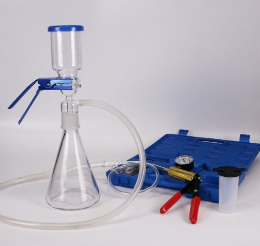 Система вакуумной фильтрации 5Drops - "MicroFiltr" на 2000 мл + ручной насос, 0 - 30 PSI - современная удобная лабораторная установка, позволяющая проводить вакуумную фильтрацию различных химических жидкостей. Вакуумная фильтрация применяется при проведении химического и биологического анализов с целью сокращения времени. Она используется для получения как осадка, так и чистого фильтрата. Позволяет полнее отделять жидкость от твердых включений, полученный осадок легче промывается от остатков жидкости. Классическая устновка для фильтрования под вакуумом собирается из фарфоровой воронки Бюхнера и колбы Бунзена при обязательном использовании бумажных обеззоленных фильтров.