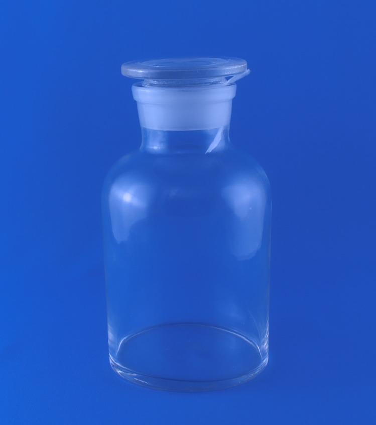 Склянка для реактивов широкое горло из специального двойного лабораторного светлого стекла. Отличается термической и химической стойкостью. Коэффициент температурного расширения применяемого стекла ниже, чем у обычного, что позволяет стеклу не трескаться при резких изменениях температуры. Представленная ёмкость выгодно отличается от прочих химических бутылей надёжной и практичной стеклянной притёртой пробкой, плотно закупоривающей горло, что обеспечивает полную герметичность, а также удобство при открытии или закрытии склянки. Тара расчитана для длительного хранения химических реактивов, в том числе летучх, фотолабильных и пахучих веществ
