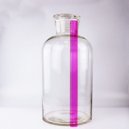 Склянка для реактивов широкое горло из специального двойного лабораторного светлого стекла. Отличается термической и химической стойкостью. Коэффициент температурного расширения применяемого стекла ниже, чем у обычного, что позволяет стеклу не трескаться при резких изменениях температуры. Представленная ёмкость выгодно отличается от прочих химических бутылей надёжной и практичной стеклянной притёртой пробкой, плотно закупоривающей горло, что обеспечивает полную герметичность, а также удобство при открытии или закрытии склянки. Тара расчитана для длительного хранения химических реактивов, в том числе летучих, фотолабильных и пахучих веществ
