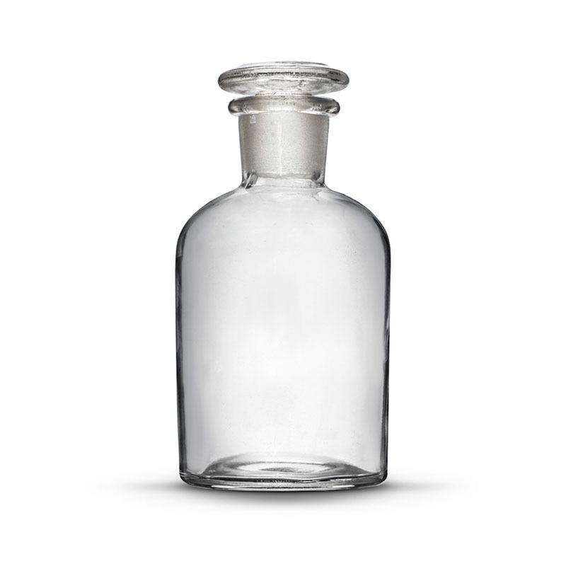 Склянка для реактивов узкое горло из специального двойного лабораторного светлого стекла. Отличается термической и химической стойкостью. Коэффициент температурного расширения применяемого стекла ниже, чем у обычного, что позволяет стеклу не трескаться при резких изменениях температуры. Представленная ёмкость выгодно отличается от прочих химических бутылей надёжной и практичной стеклянной притёртой пробкой, плотно закупоривающей горло, что обеспечивает полную герметичность, а также удобство при открытии или закрытии склянки. Тара расчитана для длительного хранения химических реактивов, в том числе летучх, фотолабильных и пахучих веществ