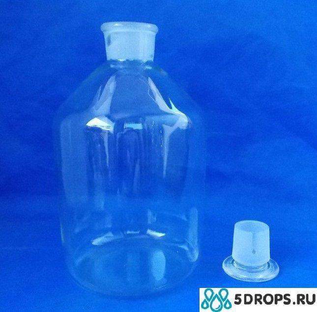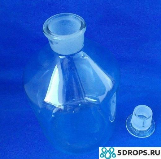 Склянка предназначена для транспортировки и хранения химических реактивов, в том числе летучих, фотолабильных и пахучих веществ . Изготовлены из прозрачного химически стойкого стекла. Крышка склянки стеклянная со шлифовым соединением с горлом, что обеспечивает полную герметичность и защиту содержимого от внешней среды. Объём - 5000 мл.