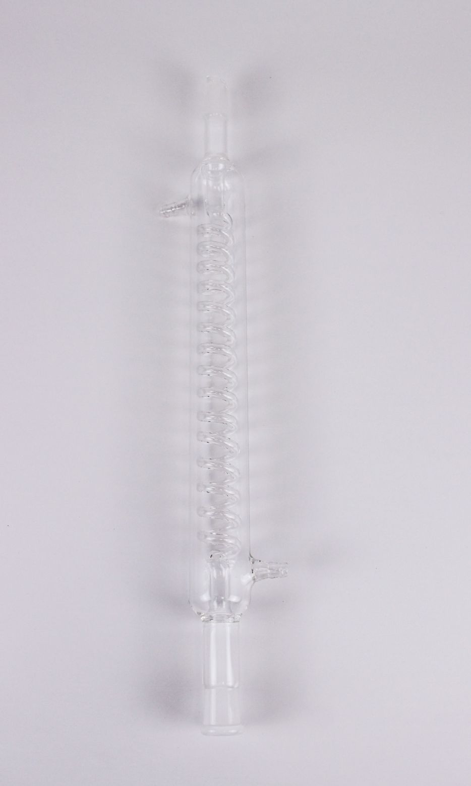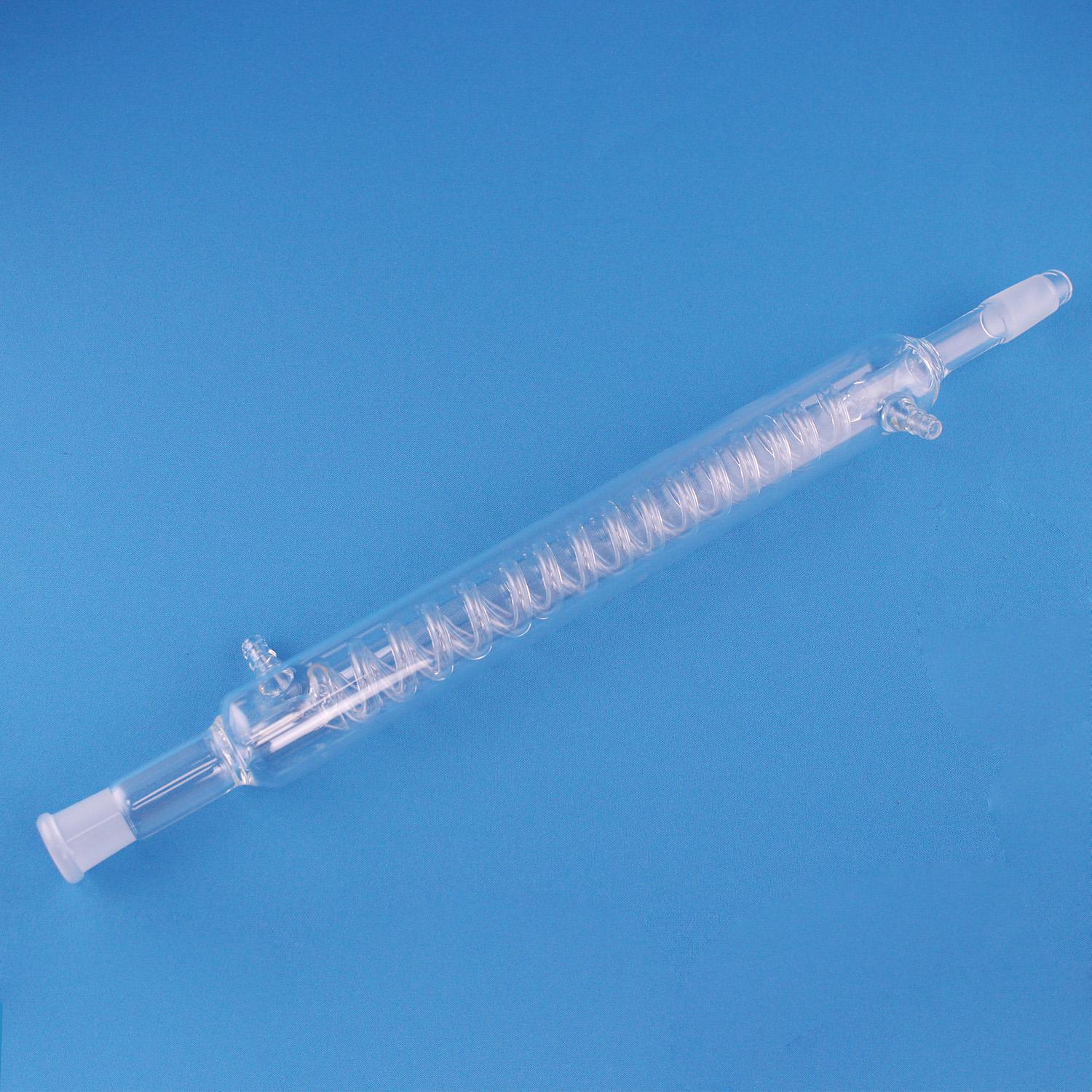 Спиральный холодильник 5drops, 300 мм, шлифы 19/26 – это стеклянный дистиллятор обладающий высокой производительностью, благодаря длине в 300 мм, он используется в лабораторных исследованиях и промышленности при конденсации паров с их охлаждением для последующего перехода в жидкую форму. Спиральный холодильник состоит из стеклянной внешней трубки с помещённой внутрь спиралью, его корпус оснащён двумя впаянными отводами. Он выполнен из особо прочного лабораторного стекла, поэтому имеет меньшие размеры и лучшие теплотехнические характеристики в отличие от металлических дистилляторов.