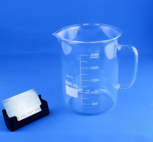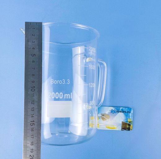 Стакан лабораторный со стеклянной ручкой 5drops В-1-2000, 2000 мл, стекло Boro 3.3, градуированный