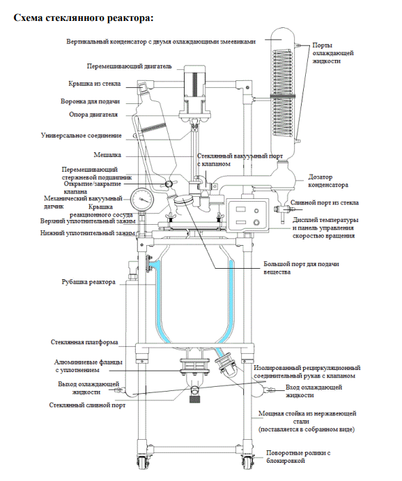 Стеклянный реактор — это лабораторное оборудование, используемое для проведения химических процессов. Он представляет собой емкость, изготовленную из боросиликатного стекла, которая обеспечивает визуальный контроль над реакцией. Такие реакторы используются в химии, фармацевтике, биотехнологии и других отраслях, где требуется точный контроль параметров процесса.