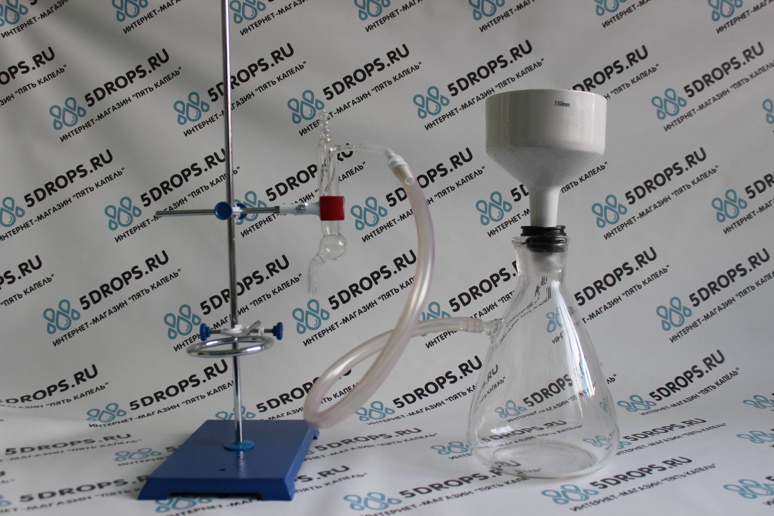 Лабораторная вакуумная установка для фильтрования "Родник" на 2,5 литра предназначена для средней фильтрации небольших объёмов жидкостей в лабораторных условиях и позволит значительно сократить ваше время на проведение обязательной процедуры очистки браги или уже готового вина и самогона от примесей путём их фильтрования через воронку Бюхнера с углем. При обычных условиях проведения данного процесса - затрачивается масса времени, поскольку заливаемая в воронку жидкость долгое время застаивается на фильтре и медленно стекает в принимающую посуду. С лабораторной вакуумной установкой "Родник" в принимающей чистый продукт колбе Бунзена создаётся вакуум, что приводит к резкому увеличению проходимости жидкости через уголь с фильтром, а также увеличивает качество очистки продукта. Интернет-магазин "Пять капель" настоятельно рекомендует приобрести подобную установку тем, кто регулярно фильтрует малые и средние объёмы жидкости, и хочет собрать свою собственную бюджетную фильтрационную установку без затрат на дорогостоящий электрический насос.