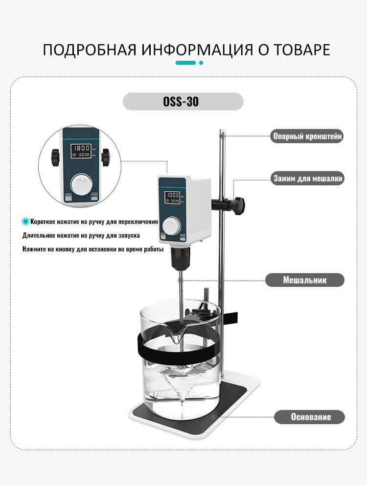 Верхнеприводная мешалка 5drops-OSS-30, с цифровым дисплеем, до 20 литров, максимальная вязкость 16000 Мпа