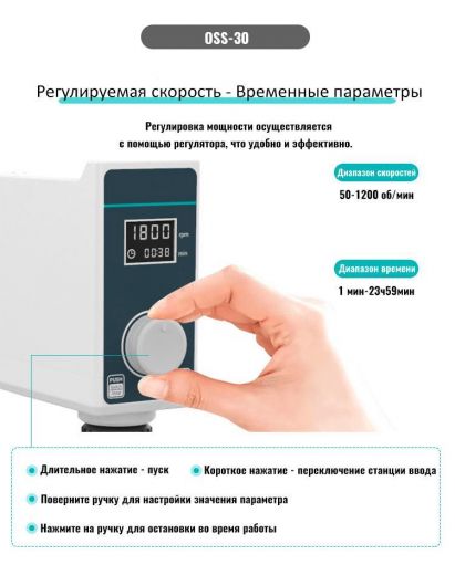 - Диапазон от 100 до 1200 об/мин позволяет точно настроить скорость в зависимости от типа и вязкости перемешиваемой жидкости.