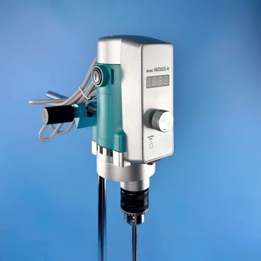 Перемешивающий элемент выполнен из нержавеющей стали и имеет корозионную устойчивость. Мощный двигатель малого размера обеспечивает стабильное перемешивание с постоянной скоростью высоковязких жидкостей.
