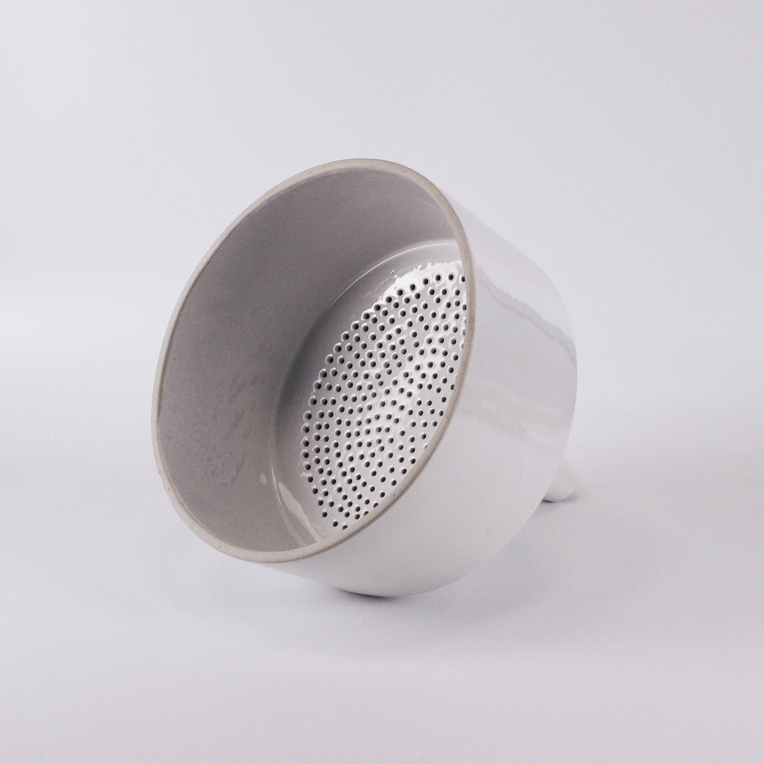 Конический корпус воронки рассчитан на большой объем жидкости, что позволяет эффективно фильтровать даже значительные объемы образца. Широкие наклонные стенки помогают направлять жидкость к перфорированной пластине, обеспечивая прохождение всего образца через фильтр.