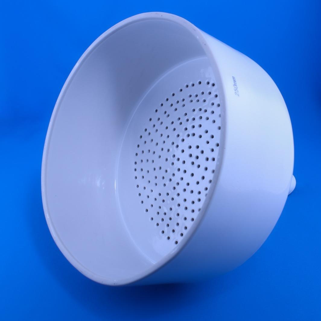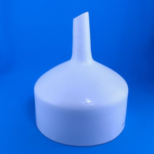 Конический корпус воронки рассчитан на большой объем жидкости, что позволяет эффективно фильтровать даже значительные объемы образца. Широкие наклонные стенки помогают направлять жидкость к перфорированной пластине, обеспечивая прохождение всего образца через фильтр.