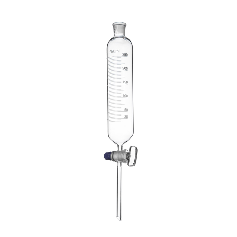 Воронка делительная цилиндрическая на 250мл со шлифом 19/26 - этот инструмент применяется для разделения жидких несмешивающихся веществ разной плотности.