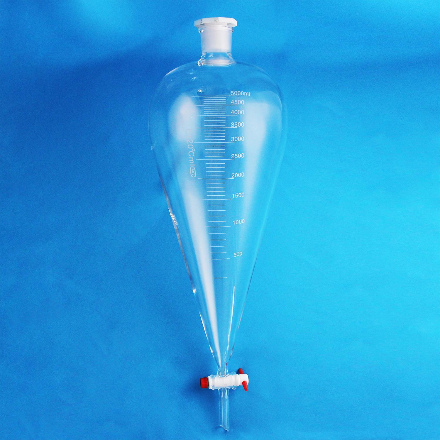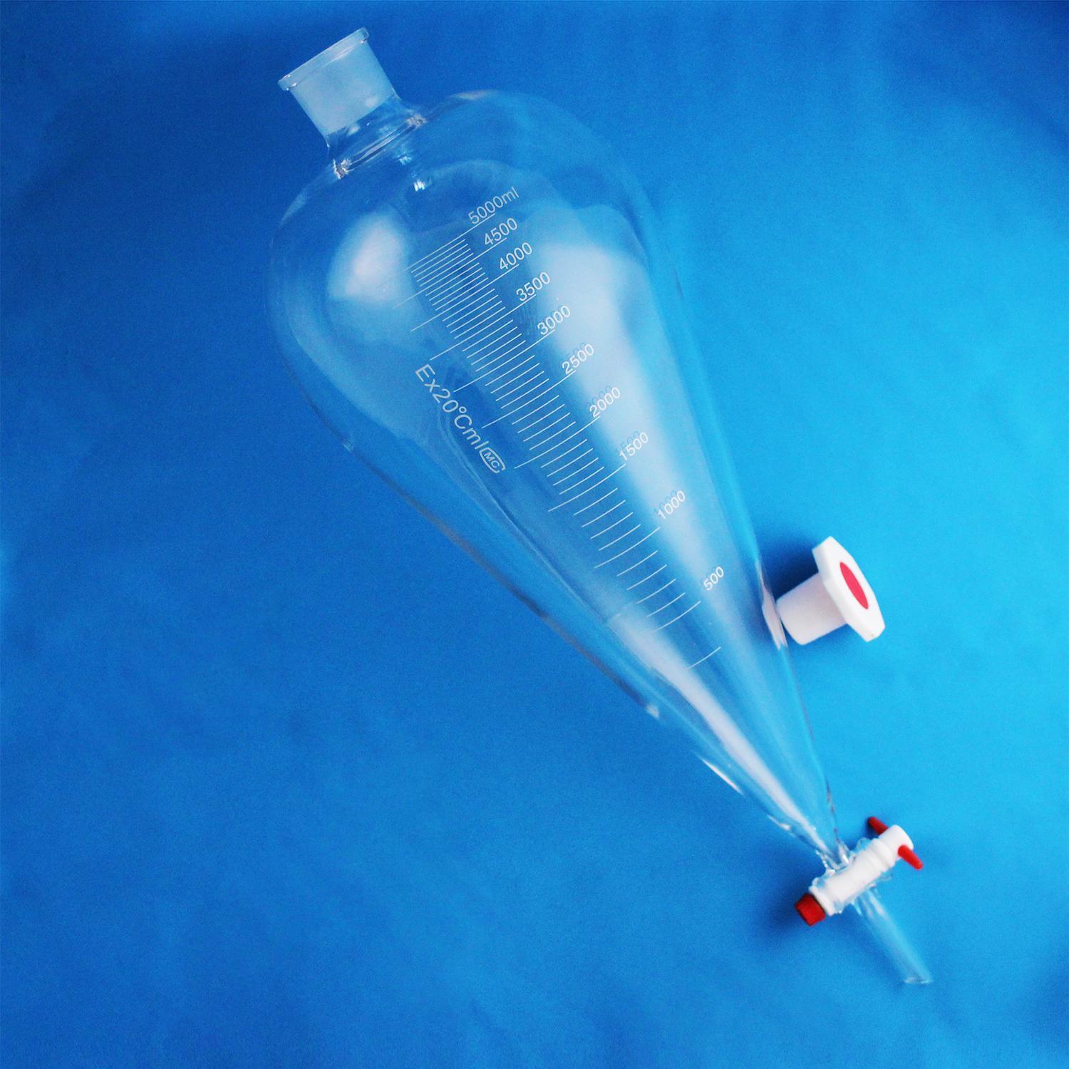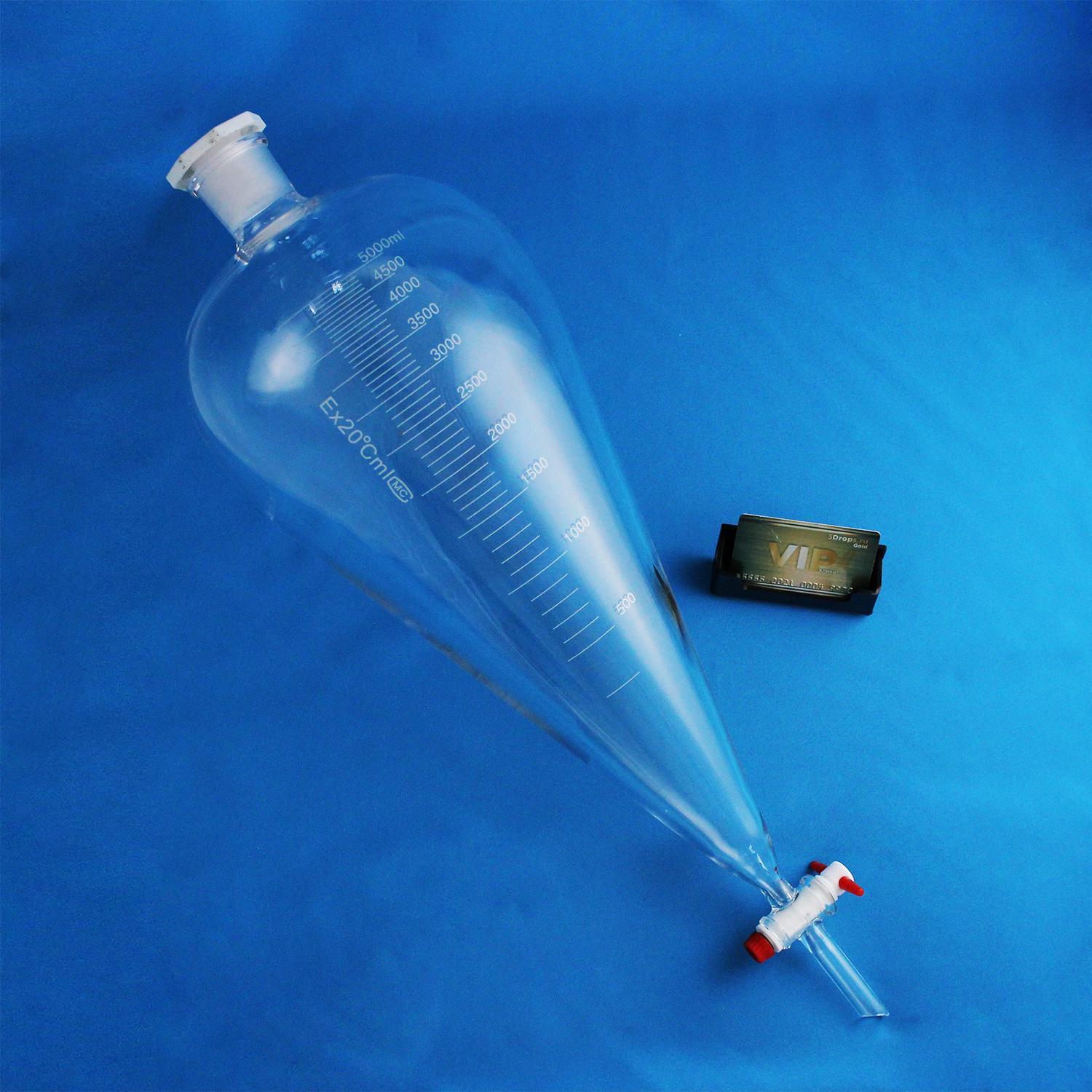 Воронка делительная грушевидная 5drops ВД-3-5000, 5000 мл, с фторопластовым краном предназначена для разделения несмешивающихся жидкостей в процедурах экстрагирования.