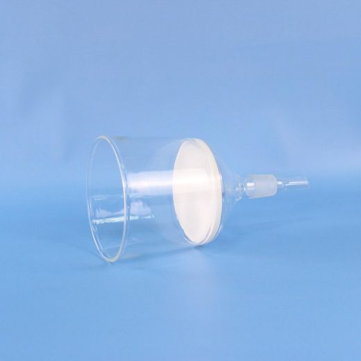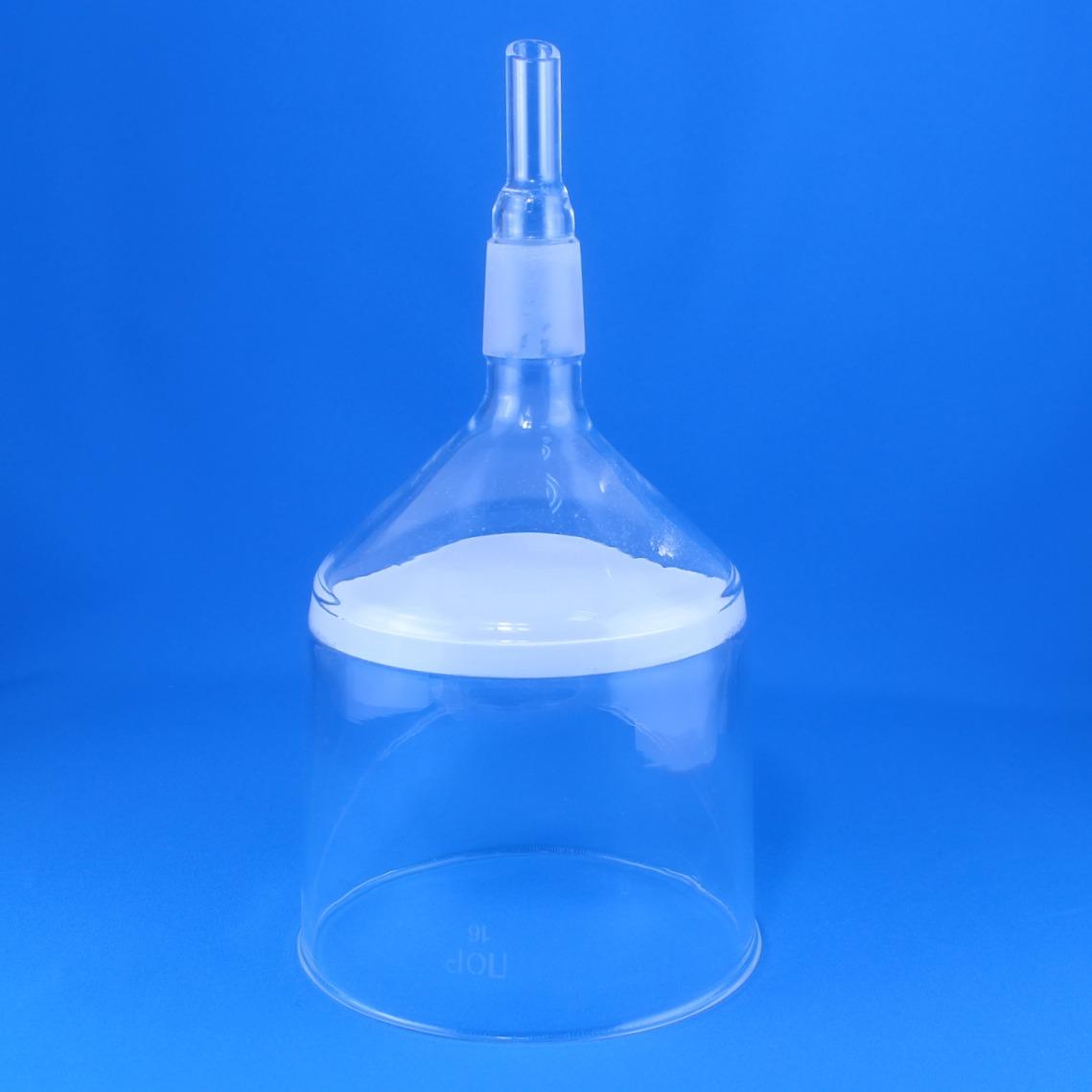 Воронка фильтровальная лабораторная (Шотта), диаметр 125 мм, пор. 16 мкм, шлиф 29/32 - специальный элемент лабораторный посуды, используемый для вакуумного фильтрования химически активных жидкостей, а также для их очистки от взвешенных примесей . Наличие впаянного в корпус воронки стеклянного фильтра из спечённого стекла позволяет не использовать в процессе фильтрации беззольные фильтры. Кроме того, материал изготовления воронки - лабораторное термостойкое стекло позволяет фильтровать особо агрессивные концентрированные вещества без взаимодействия с ними. Помимо применения в химии воронку очень удобно использовать для фильтрации браги или уже готового продукта в процессе его очистки углем. В зависимости от фракции взвешенных в напитке частиц можно выбрать воронку с более или менее крупными порами.