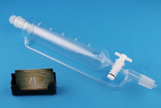 Воронка капельная цилиндрическая 5drops, ВД-2-500 шлиф 24/29, с компенсатором давления, на 500 мл. Воронка капельная применяется для разделения жидких несмешивающихся веществ разной плотности, она используются если необходимо достаточно медленно ввести жидкость на дно каких-либо сосудов. Ее часто применяют если ведётся работа с малыми дозами веществ. Изготовлена из стекла способного переносить воздействие большинства химических соединений, включая кислоты и неконцентрированные щелочи. Благодаря наличии компенсатора давления вы сможете добавлять различные жидкости в очень плотно закрытые ёмкости. Компенсатор давления представляет собой трубку, расположенную в боковой части воронки. Предназначена для для сброса избыточного газа из колбы после слива в нее нижней более тяжелой жидкости, когда следует изолировать ее от воздействия воздуха. Капельные воронки бывают грушевидной или цилиндрической формы.