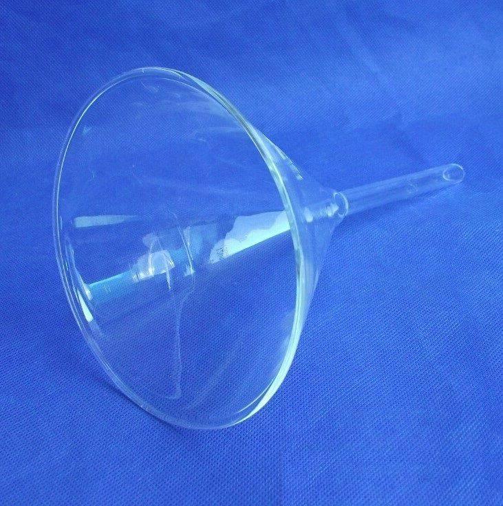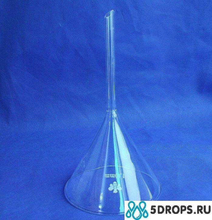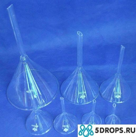 Стеклянная лабораторная воронка для дозирования и переливания жидких химических или бытовых пищевых веществ. Выполнены из толстого термостойкого химически инертного стекла, благодаря чему совершенно не влияют на вкус и качество переливаемых жидкостей.