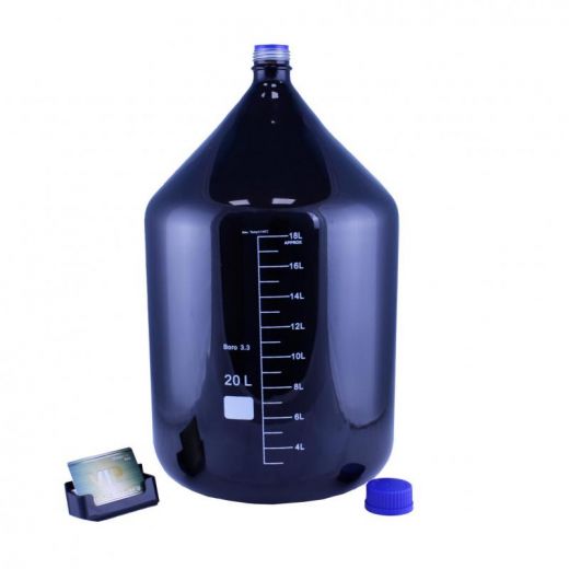 Банка для реактивов 5drops-GL45, 20 000 мл, Boro 3.3, темное стекло, градуированная, с винтовой крышкой специальная лабораторная измерительная посуда, широко используемая при проведении различных исследований, опытов в медицинских, научных, учебных и производственных лабораториях. Изготовленные из боросиликатного стекла, устойчивого как к низким, так и к высоким температурам.