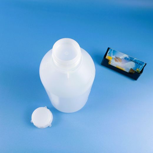 Бутылки узкогорлые, градуированные LAMAPLAST 1000 мл - снабжена вкладышем, обеспечивающим герметичность, и специальными петельками, которые используются для пломбировки или крепления информационных табличек. Бутылка устойчива к действию щелочей любых концентраций, органических кислот, концентрированных соляной и плавиковой кислот; разрушается азотной кислотой, хлором и фтором. Изготовлена из полиэтилена. Автоклавированию не подлежит.