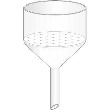 Конический корпус воронки рассчитан на большой объем жидкости, что позволяет эффективно фильтровать даже значительные объемы образца. Широкие наклонные стенки помогают направлять жидкость к перфорированной пластине, обеспечивая прохождение всего образца через фильтр.