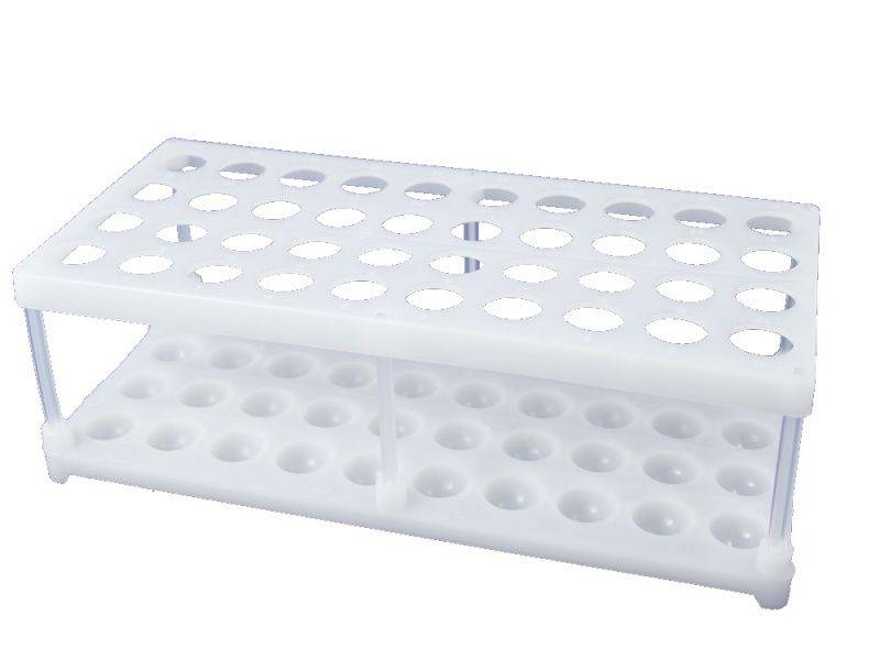 Штатив ШЛПП-40 для пробирок 18 мм, 40 гнезд, полипропилен/ПЭНД, разборный. Обеспечивает безопасное вертикальное размещение, транспортировку и сортировку пробирок различного объёма. Штатив предотвращает опрокидывание, облегчает организацию рабочего места и поддерживает стандарты лабораторной гигиены. Штативы также способствуют стабильному позиционированию пробирок в процессе инкубации, центрифугирования, дозирования или хранения.