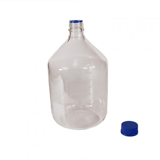 Стеклянная бутыль 5000 мл из специального двойного лабораторного стекла, отличающегося термической и химической стойкостью. Винтовая крышка с прокладкой надёжно защищает содержимое от воздействий внешней среды. Для удобства эксплуатации на поверхности бутыли нанесена цифровая градуировка. Представленная ёмкость позволяет хранить в себе различные типы реактивов, в том числе опасные, отличается мксимальной простотой и надёжностью в эсксплуатации, а также имеет привлекательную внешнюю форму.
