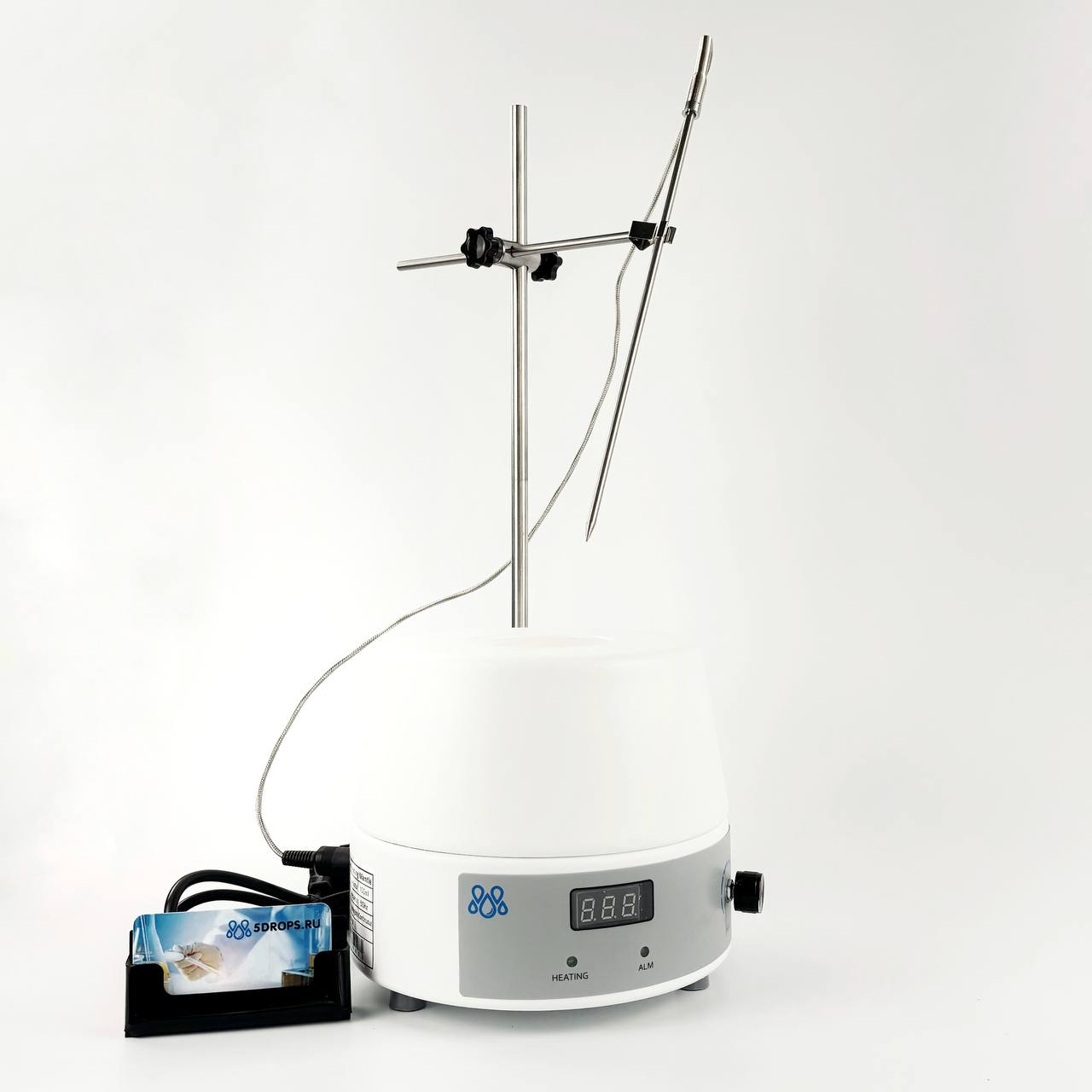 Колбонагреватель 5drops-100D на 100 мл, с цифровым дисплеем и внешним датчиком температуры это уникальное лабораторное устройство, которое может нагревать жидкость, обеспечивая полную равномерность температуры и контролировать ее с помощью цифрового дисплея.