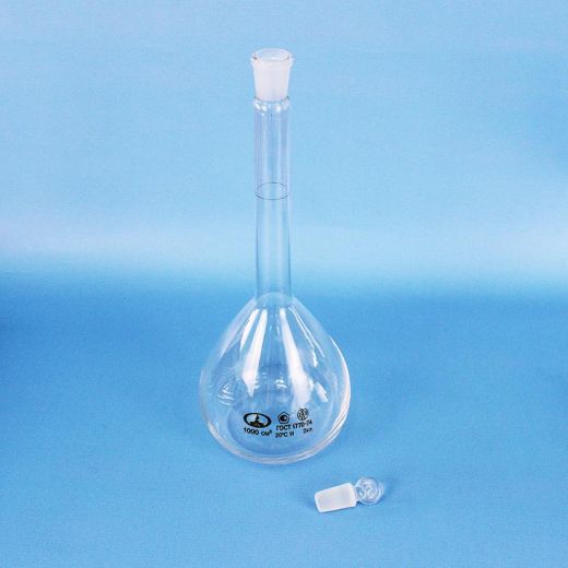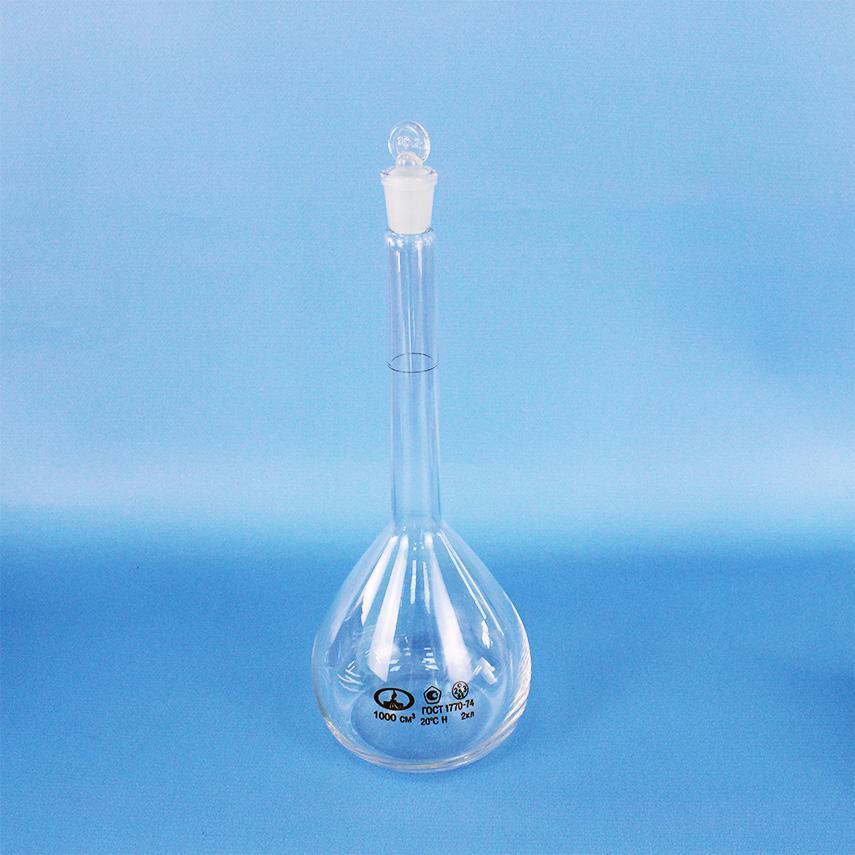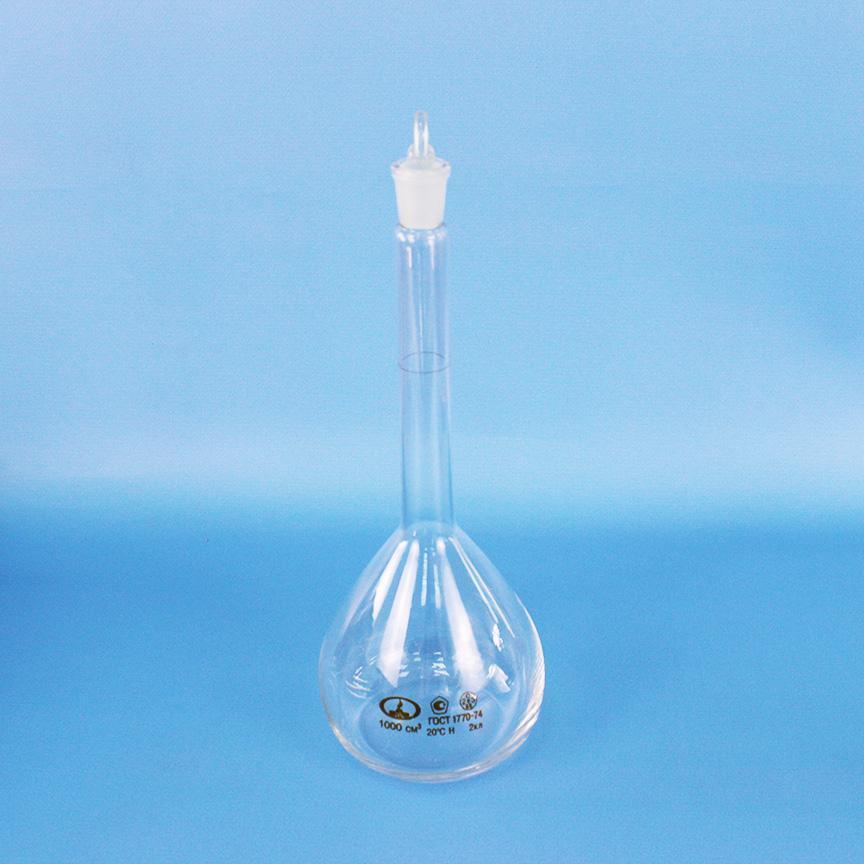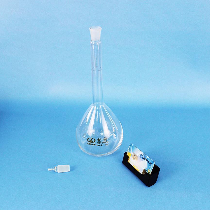 Колба мерная 2-1000-2, 1000 мл, 2 класс точности, стеклянная пробка, шлиф 19/26. предназначена для точного измерения и приготовления объемов жидкостей в лабораторных условиях. Она оснащена меткой, определяющей объем, что позволяет получать высокую точность измерений, необходимую для аналитических работ. Мерная колба изготовлена из стекла ХС-1 в соответствии ГОСТ 21400-75 обозначающий химически стойкое стекло первого класса.