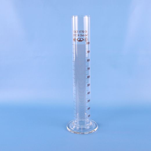 Цилиндр мерный 1-1000-2, 1000 мл, со стеклянным основанием предназначены для отмеривания жидкостей методом налива (т.е. нужный объем будет в цилиндре; при переливании в другую посуду следует учесть потери жидкости на смачивание стенок цилиндра). Цилиндр изготовлен по ТУ 9464-013-52876351-2014 из химико-лабораторного стекла по ГОСТ 21400. Исполнение 1, класс точности 2. Нанесенная шкала коричневого или белого цветов устойчива к высоким температурам и ко многим химическим веществам.