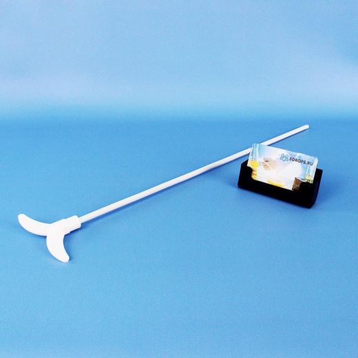 Мешальник якорного типа, выполненный из нержавеющей стали с фторопластовым покрытием, представляет собой идеальный инструмент для работы с вязкими жидкостями, такими как гели и пасты. Его уникальный дизайн обеспечивает эффективное перемешивание вещества, предотвращая его накопление на стенках емкости.