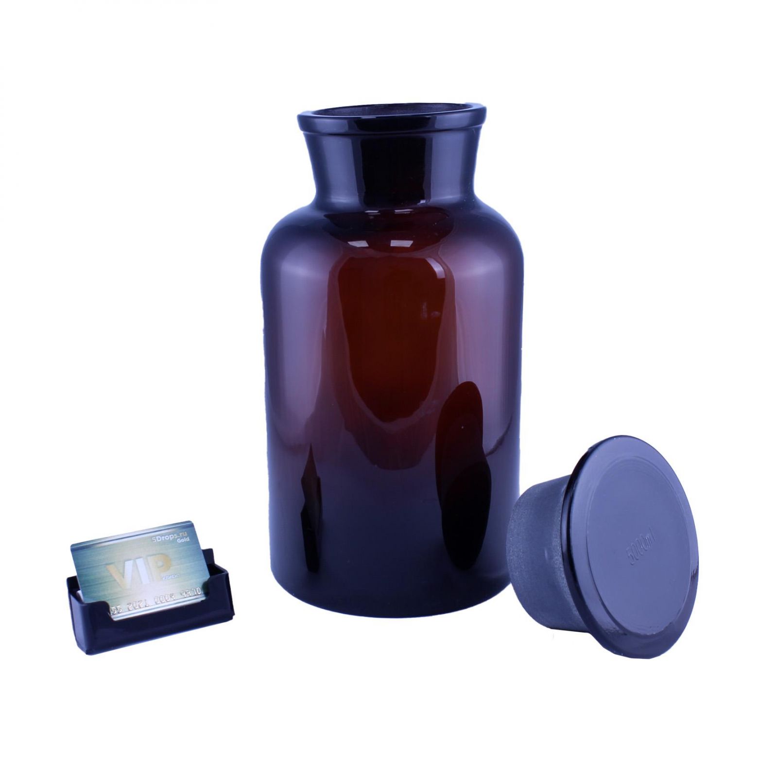 Склянка (штанглас) 5drops, 5000 мл, темное стекло, с притёртой пробкой, широкое горло