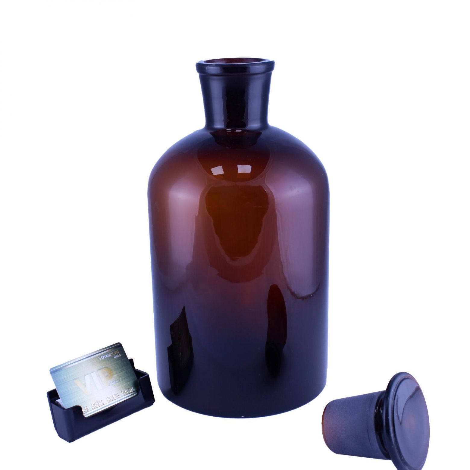 Склянка (штанглас) 5drops, 5000 мл, темное стекло, с притёртой пробкой, узкое горло