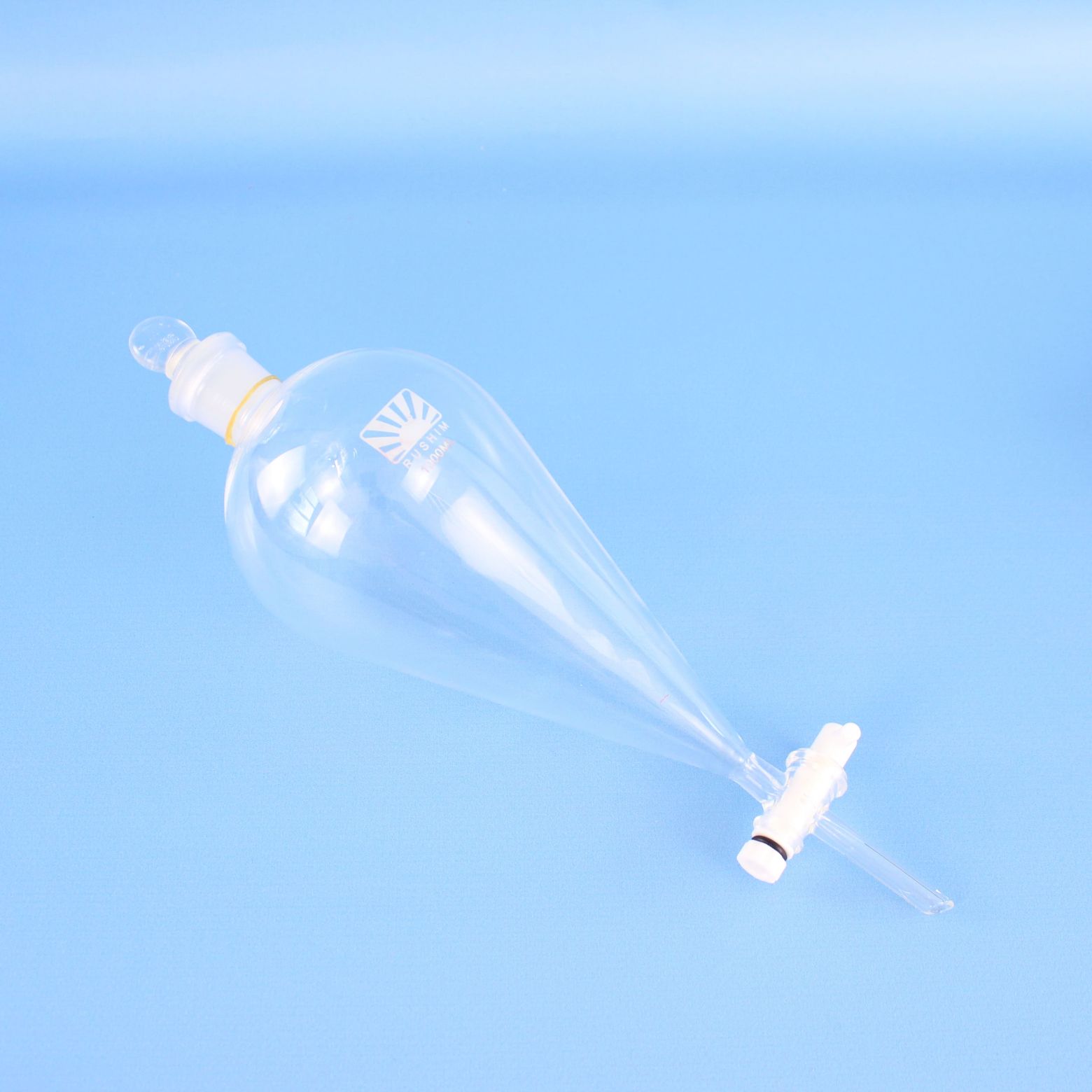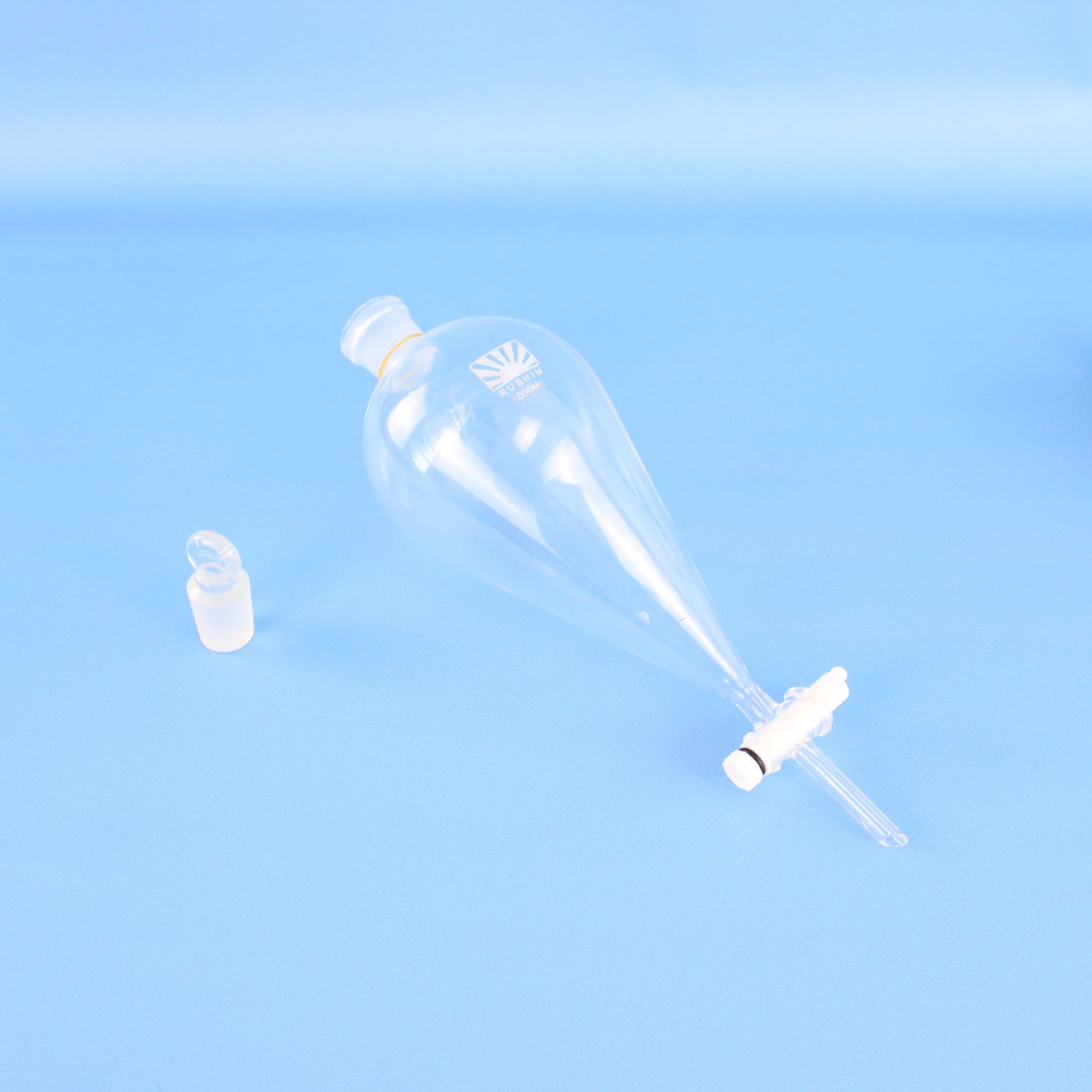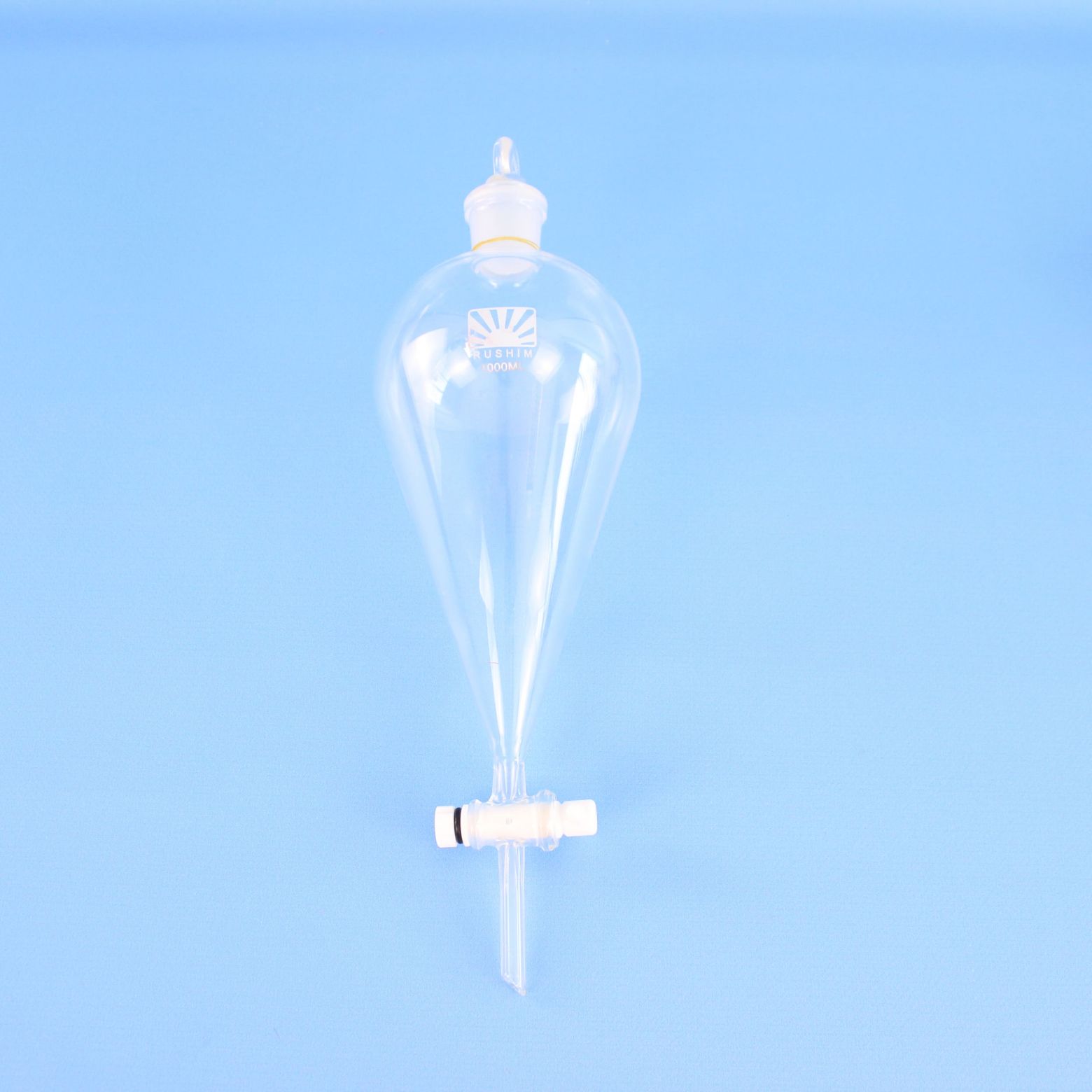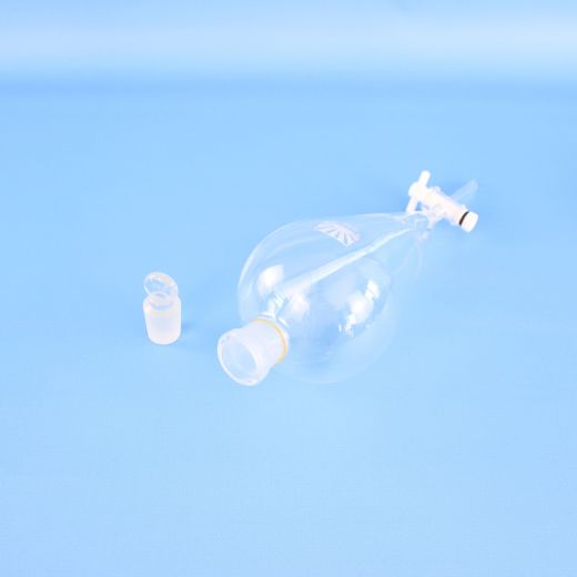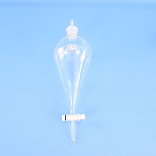 Воронка делительная ВД-3-1000 грушевидная с фторопластовым краном ISO 4800 - предназначена для разделения несмешивающихся жидкостей в процедурах экстрагирования. Изготовлена из химико-лабораторного стекла.