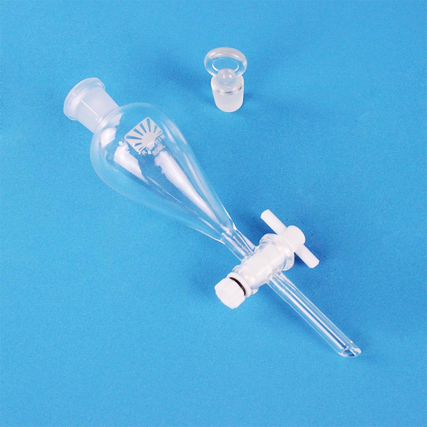 Воронка делительная ВД-3-60 грушевидная с фторопластовым краном ISO 4800 - предназначена для разделения несмешивающихся жидкостей в процедурах экстрагирования. Изготовлена из химико-лабораторного стекла.