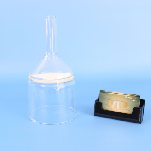 Воронка фильтровальная лабораторная (Шотта), диаметр 90 мм, пор. 160 мкм, без шлифа - специальный элемент лабораторный посуды, используемый для вакуумного фильтрования химически активных жидкостей, а также для их очистки от взвешенных примесей . Наличие впаянного в корпус воронки стеклянного фильтра из спечённого стекла позволяет не использовать в процессе фильтрации беззольные фильтры. Кроме того, материал изготовления воронки - лабораторное термостойкое стекло позволяет фильтровать особо агрессивные концентрированные вещества без взаимодействия с ними. Помимо применения в химии воронку очень удобно использовать для фильтрации браги или уже готового продукта в процессе его очистки углем. В зависимости от фракции взвешенных в напитке частиц можно выбрать воронку с более или менее крупными порами.